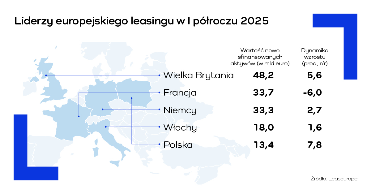 Na podstawie danych przekazanych przez Związek Polskiego Leasingu do badania Leaseurope polski sektor leasingu osiągnął w pierwszej połowie 2025 r.: