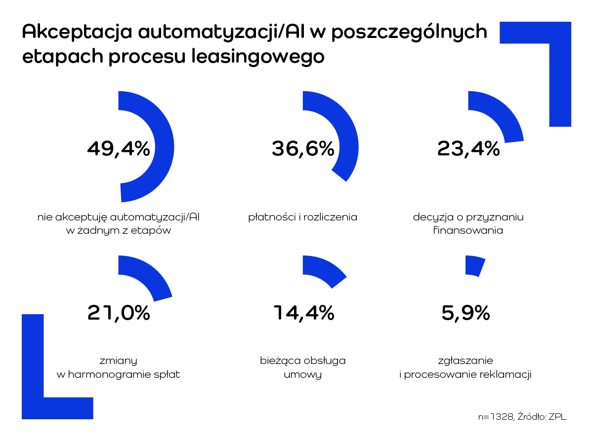 - Prawie połowa przedsiębiorców nie akceptuje automatyzacji lub AI na żadnym etapie procesu leasingowego